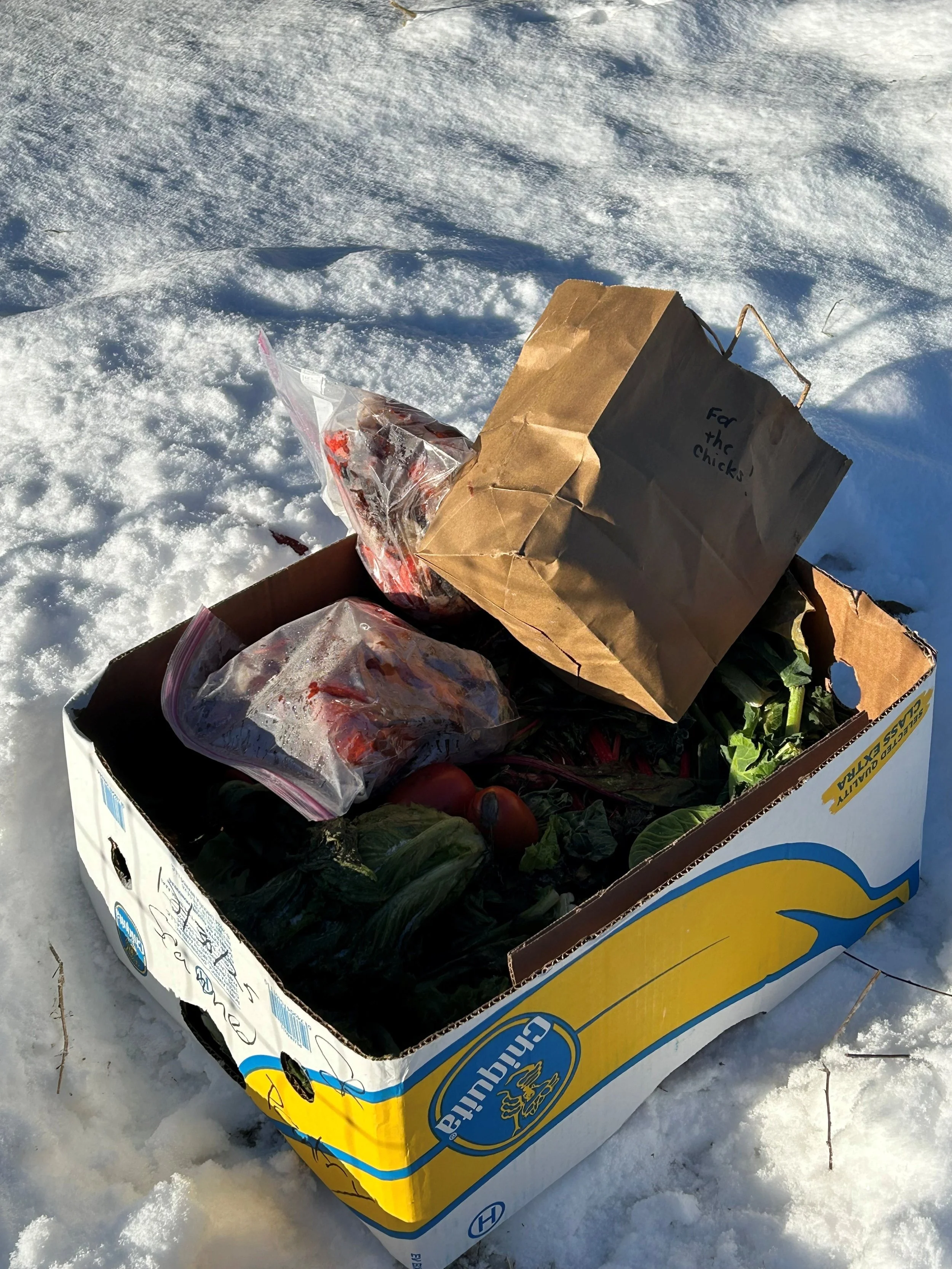 Food scraps and seasonal decorations that our wonderful neighbors have dropped off for our farm animals.