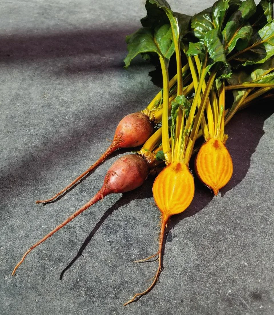 First launched by Row 7, this striking, flame-colored beet is the brainchild of breeder Irwin Goldman, who developed it over many years at the University of Wisconsin. In many ways, he thinks like a chef, and he is passionate about focusing people’s attention on the characteristics in vegetables that typically go unnoticed. In this case, he wanted to create a visually striking beet, one with a vibrant orange-yellow interior and cylindrical shape. But he also wanted to take on the beet’s dirty reputation—the earthy flavor that many blame for their beet aversion.